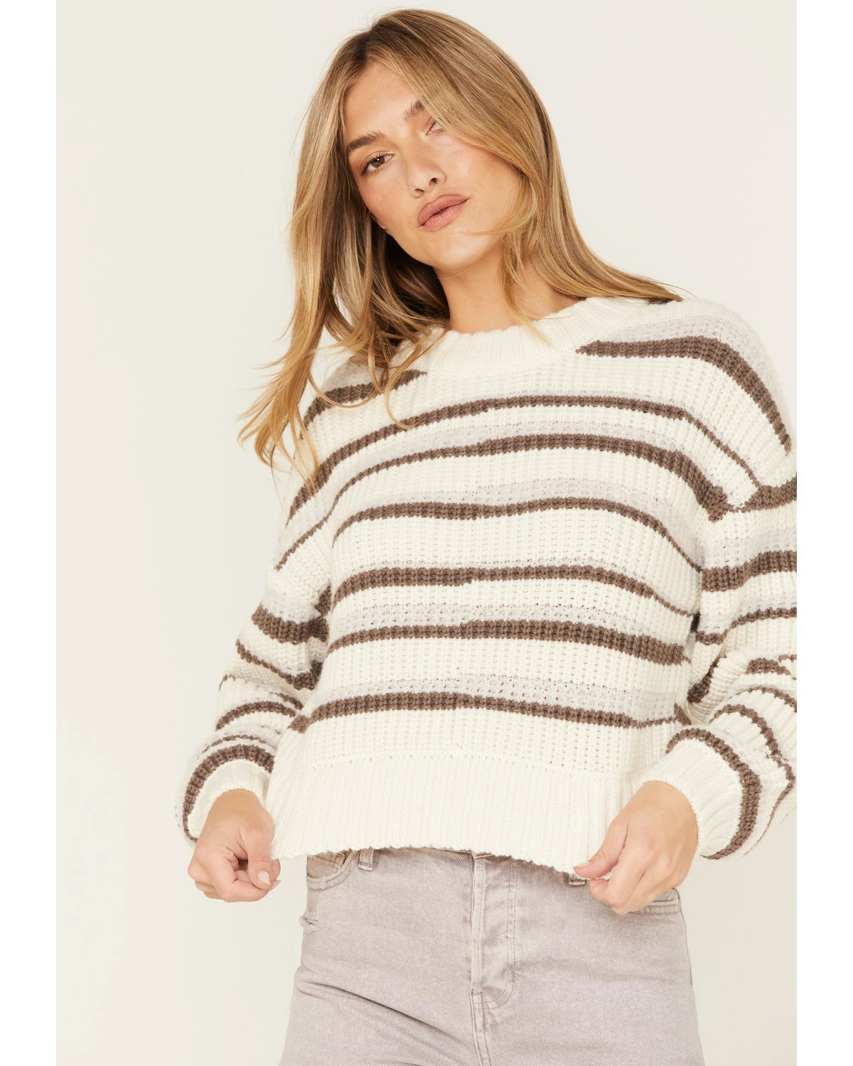 Be the first to review “Cleo + Wolf Women’s Abstract Stripe Cropped Knit Sweater Ivory” Cancel reply