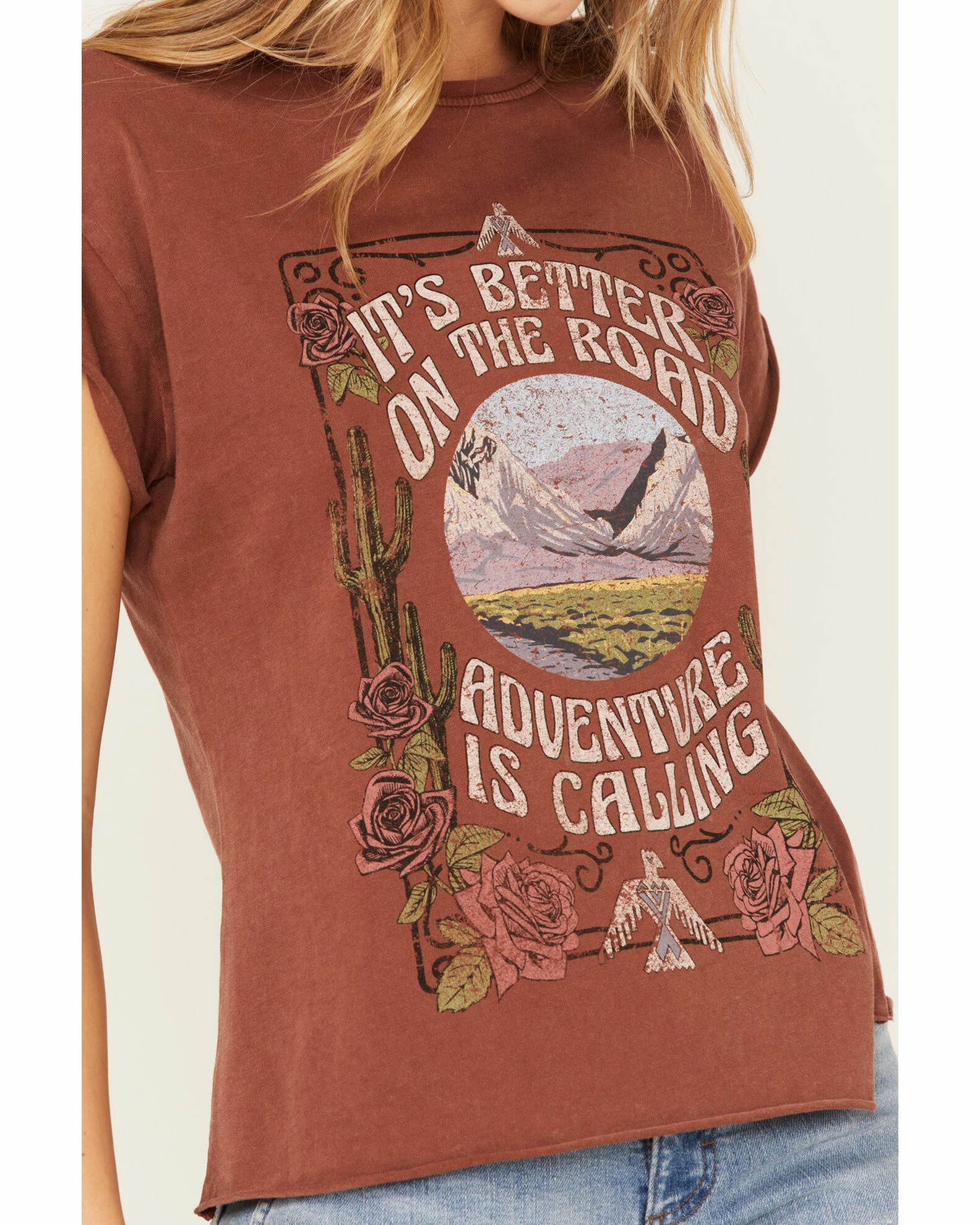 - Brown with “It’s Better On The Road, Adventure Is Calling” scene graphic on front