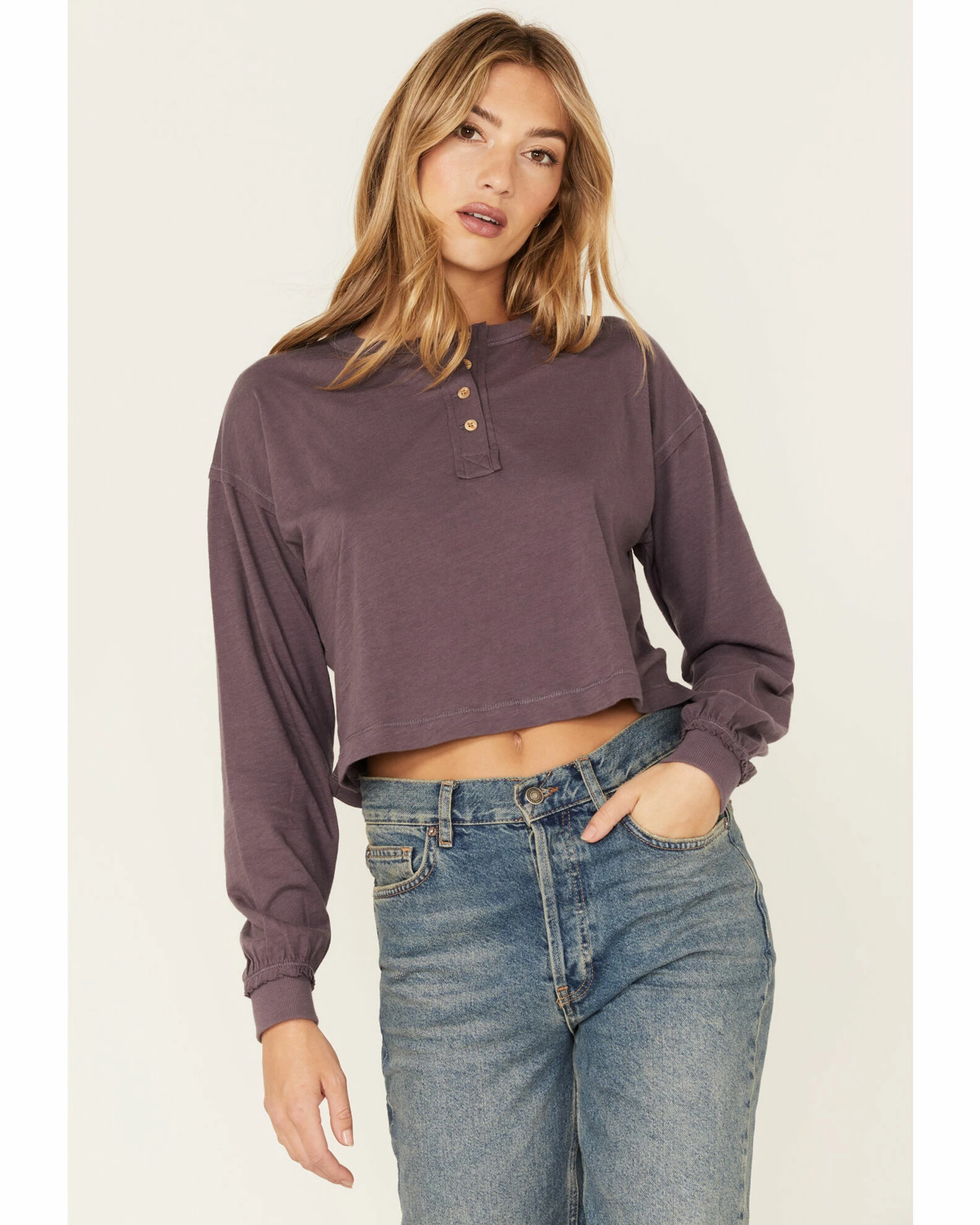 Be the first to review “Cleo + Wolf Women’s Boxy Boyfriend Long Sleeve Henley Shirt Violet” Cancel reply
