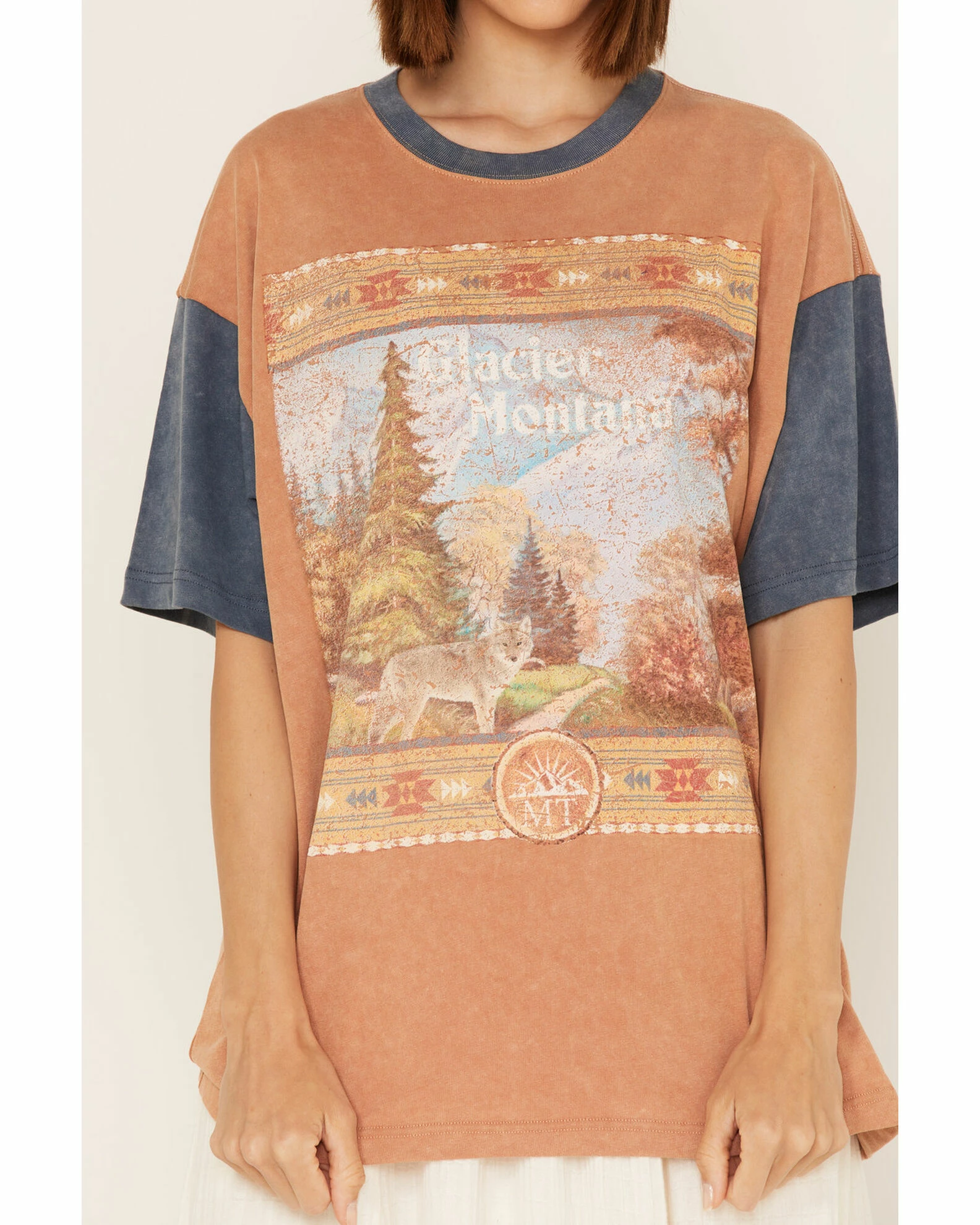 - Glacier Montana and wolf graphic with Southwestern design