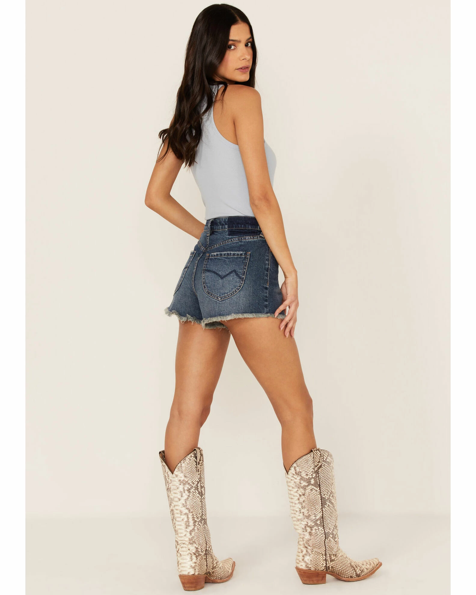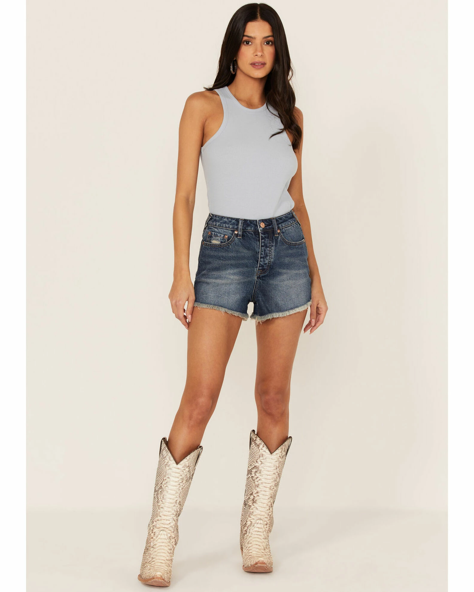 Be the first to review “Cleo + Wolf Women’s High-Rise Dark Wash Frayed Denim Shorts” Cancel reply