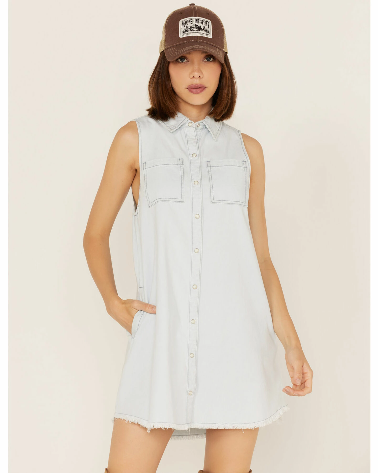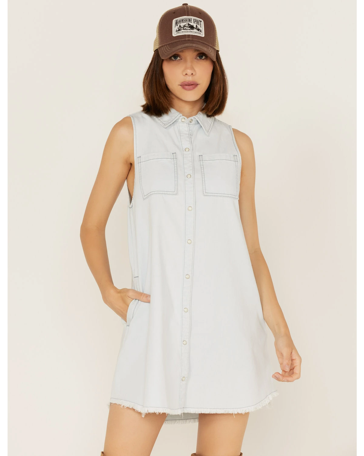 Be the first to review “Cleo + Wolf Women’s Medium Wash Sleeveless Denim Shirt Dress” Cancel reply