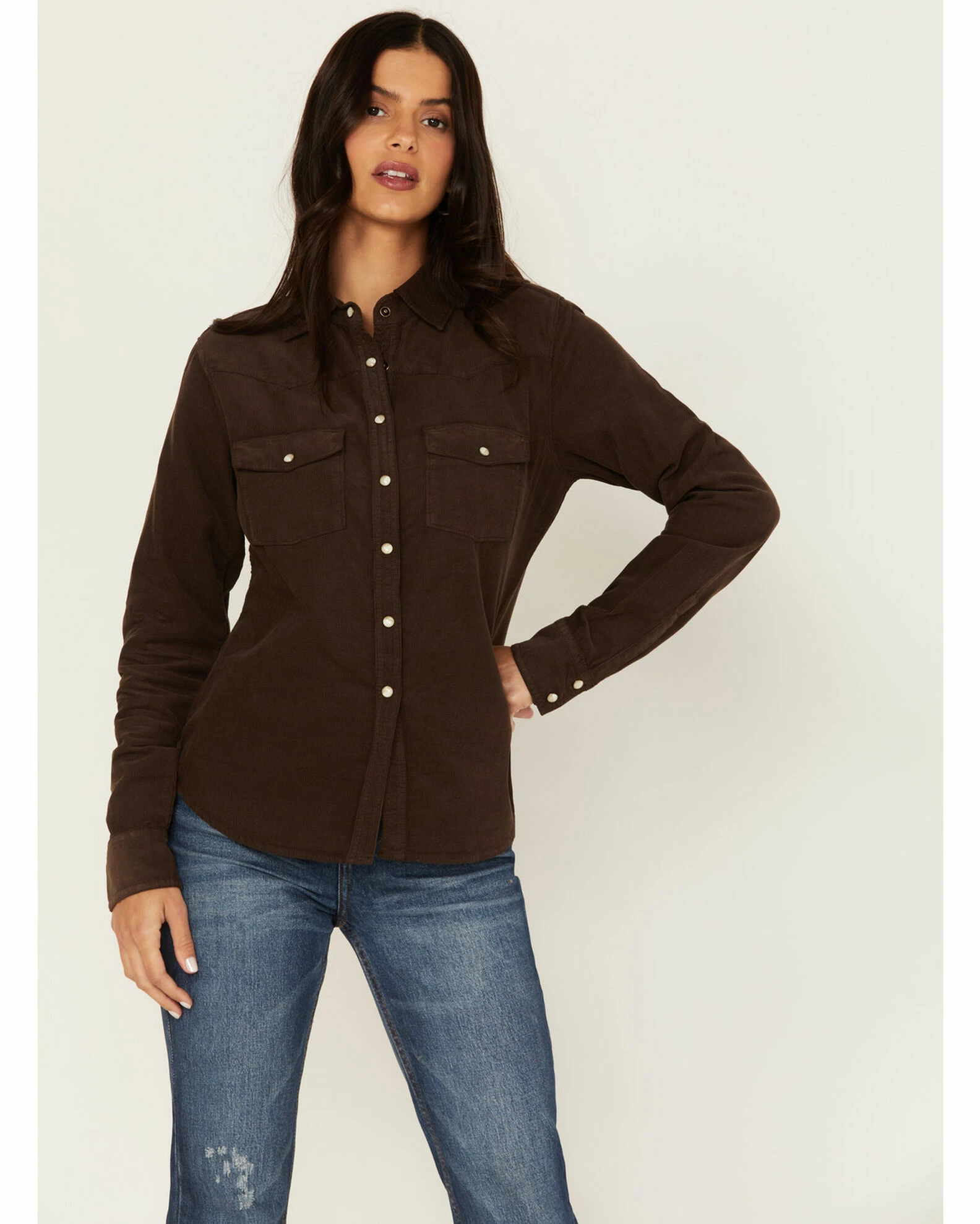 Be the first to review “Cleo + Wolf Women’s Pincord Button-Down Long Sleeve Snap Western Shirt Chocolate” Cancel reply