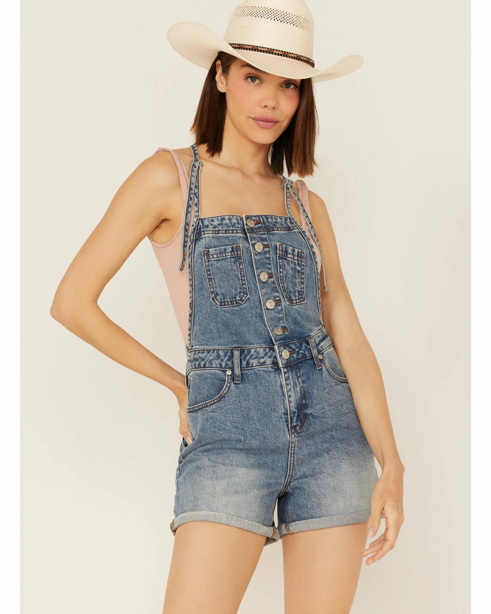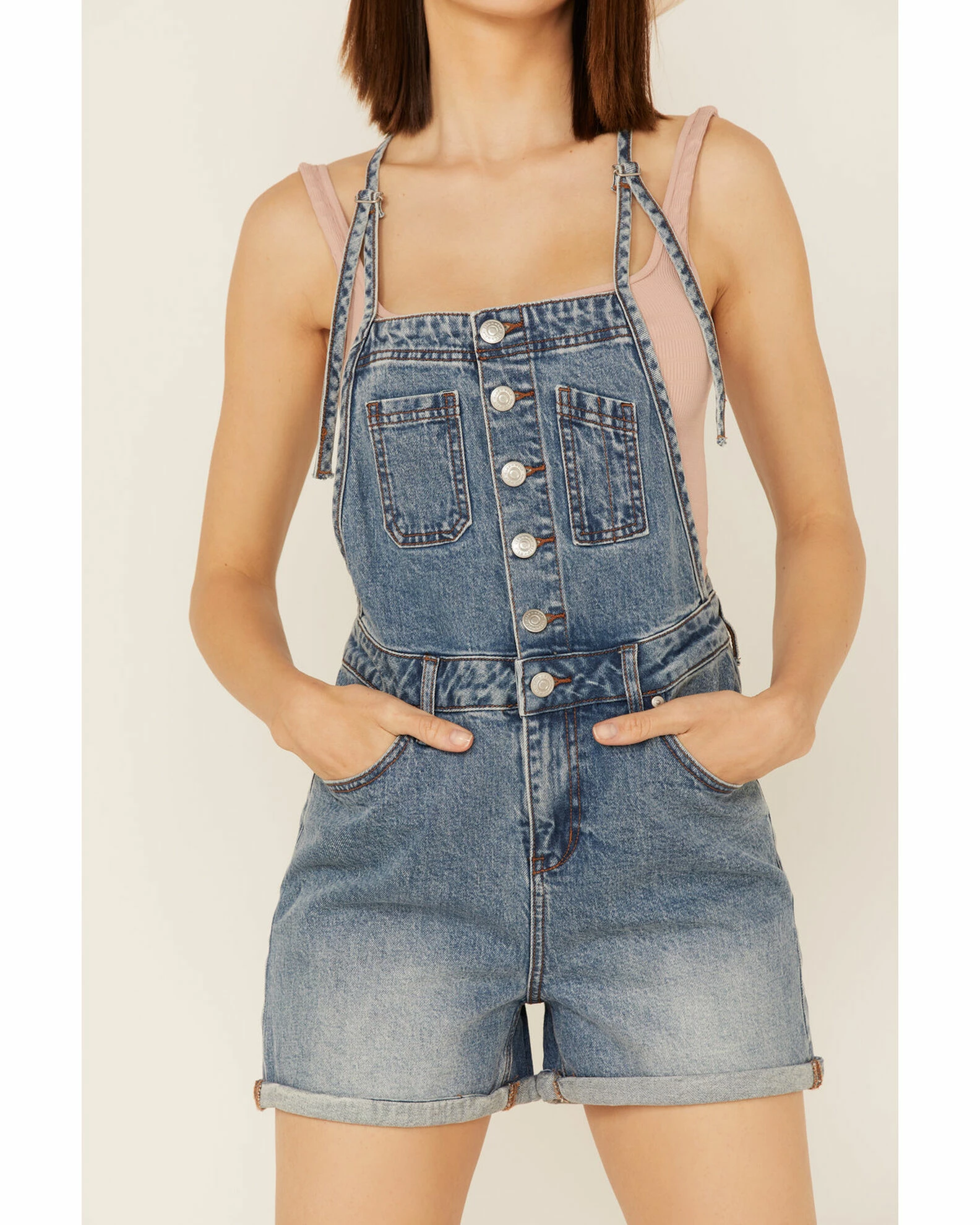 Be the first to review “Cleo + Wolf Women’s Roll Cuff Denim Shortall Medium Wash” Cancel reply