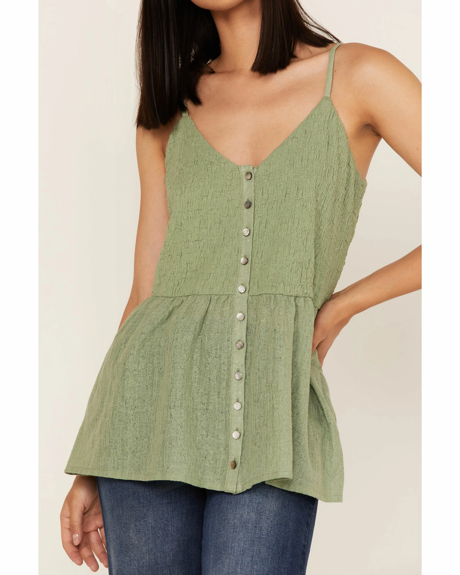 Be the first to review “Cleo + Wolf Women’s Smocked Button Front Woven Tank Top Loden” Cancel reply