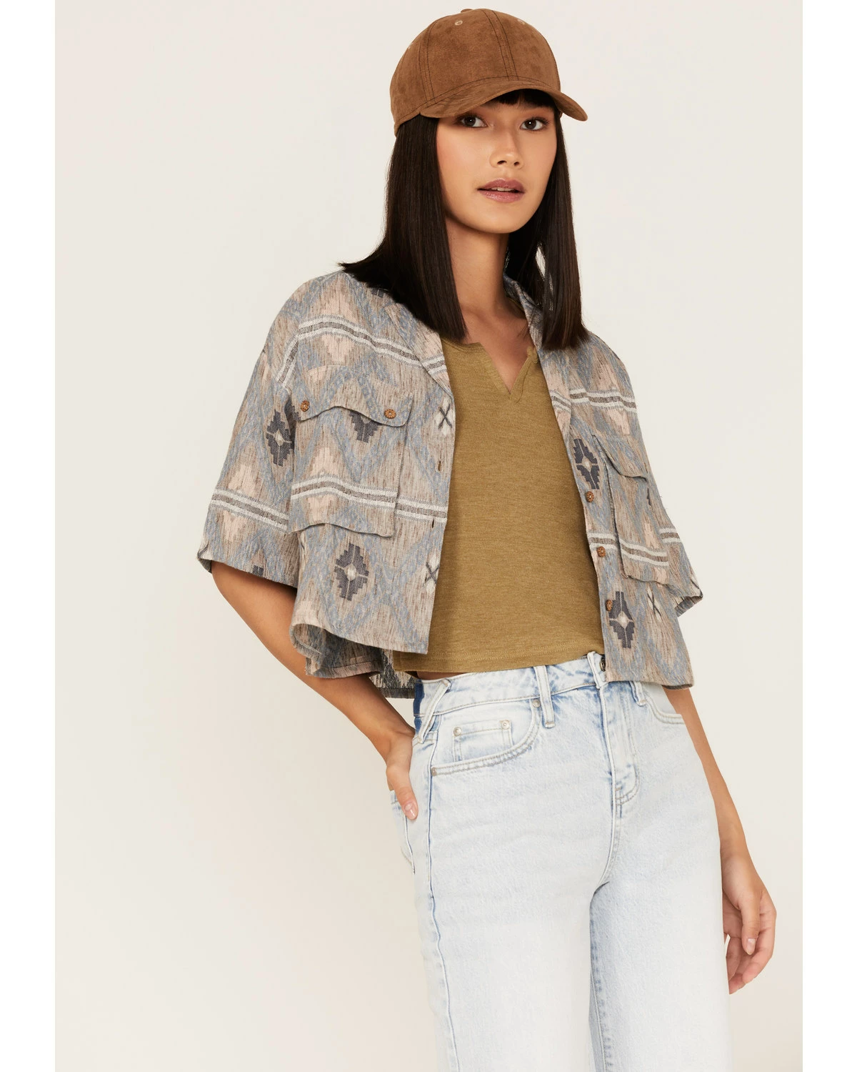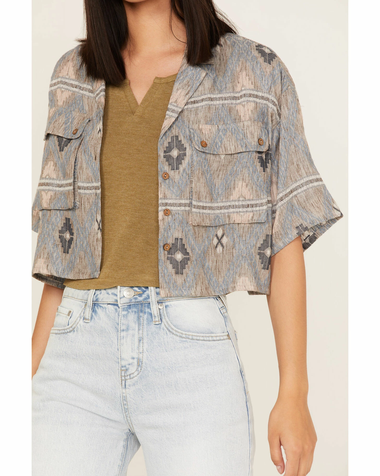 Be the first to review “Cleo + Wolf Women’s Southwestern Print Relaxed Button-Front Shirt Blue” Cancel reply