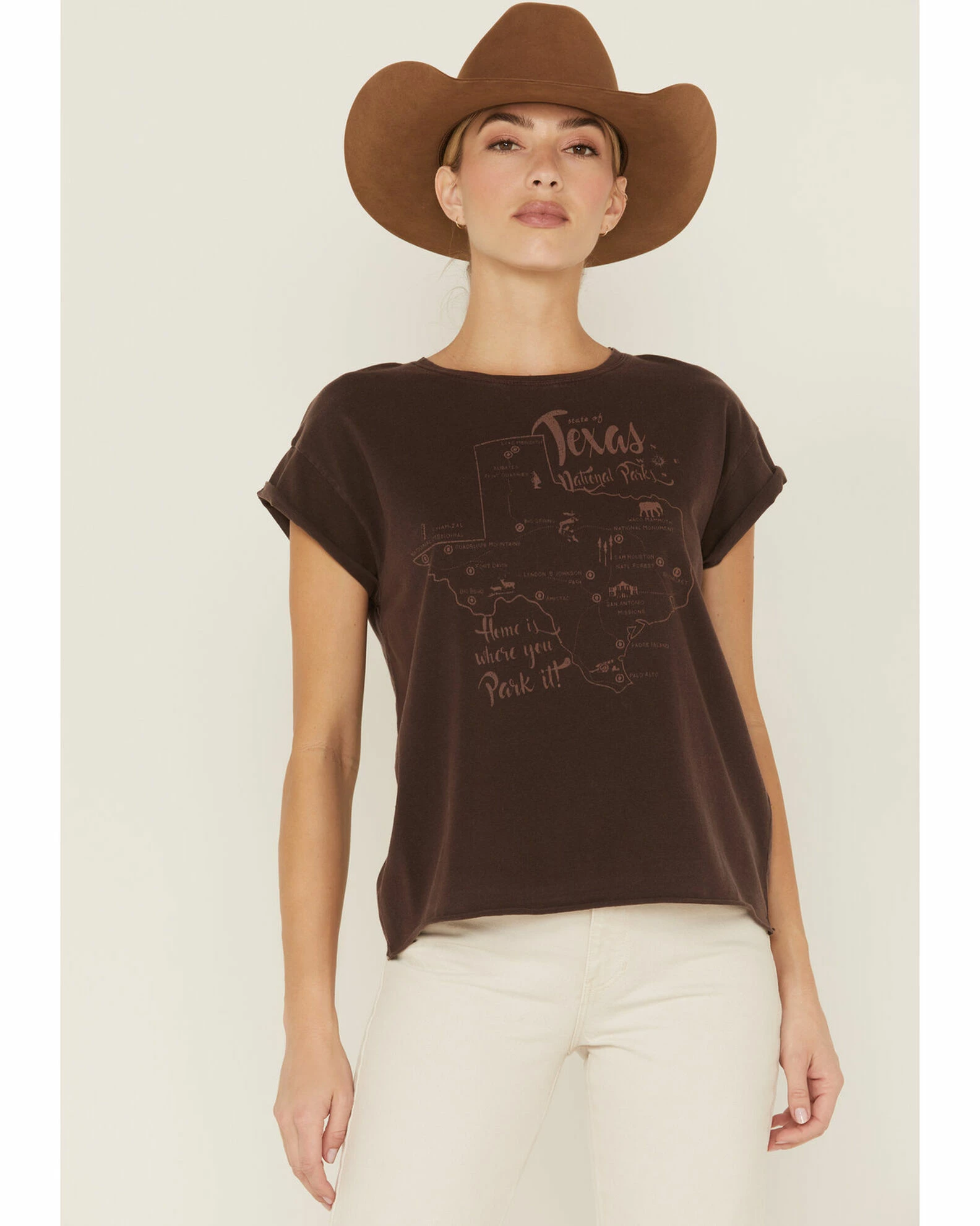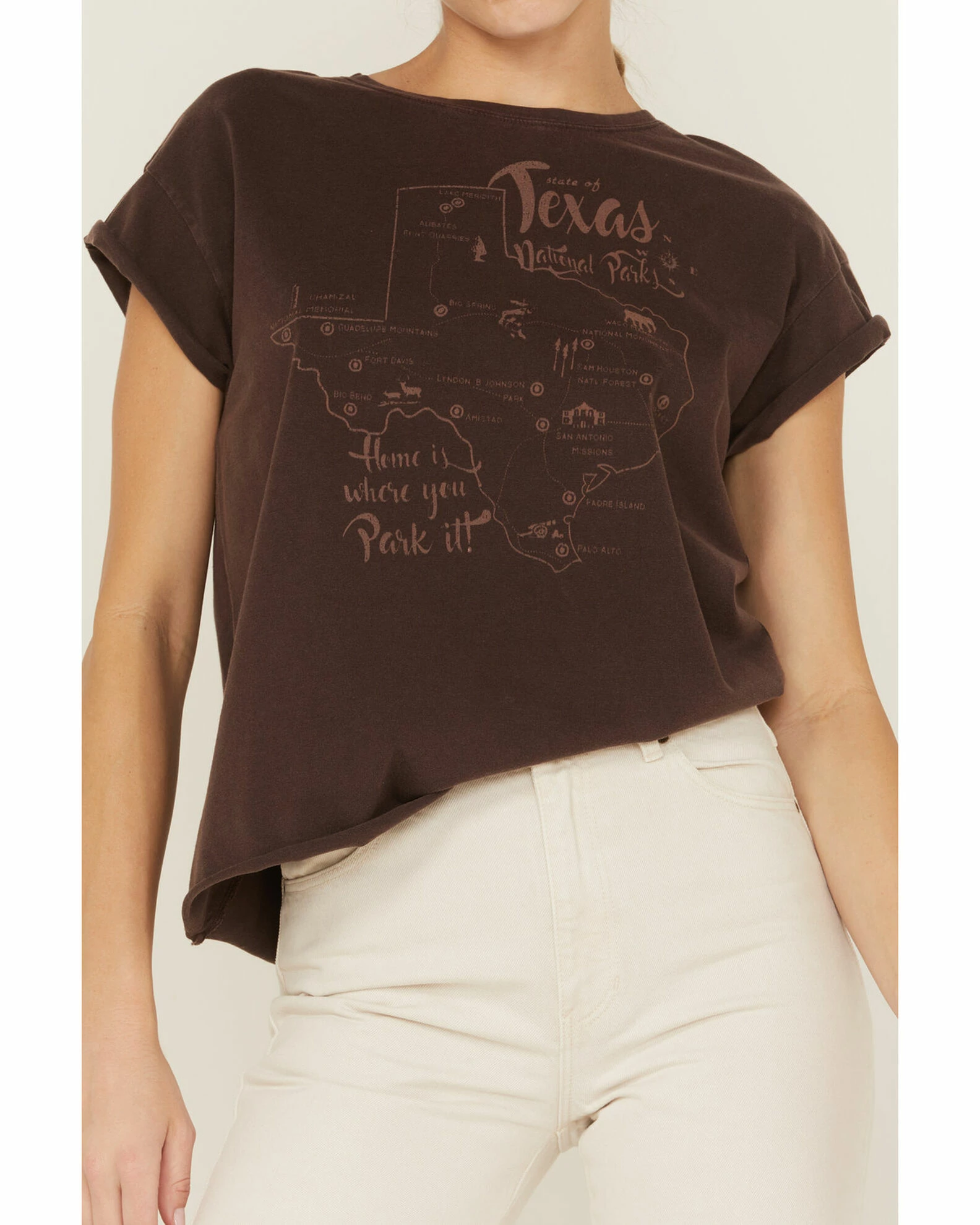 Be the first to review “Cleo + Wolf Women’s Texas Map Rolled Sleeve Graphic Tee Dark Brown” Cancel reply